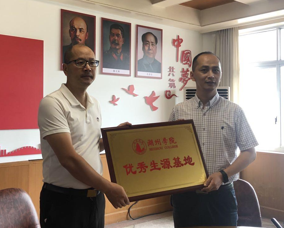 随后我校招生团队来到东阳市巍山高级中学,举行了“优秀生源基地”签约授牌仪式。我校领导与巍山高级中学校长吴国强共同出席了此次签约授牌仪式。