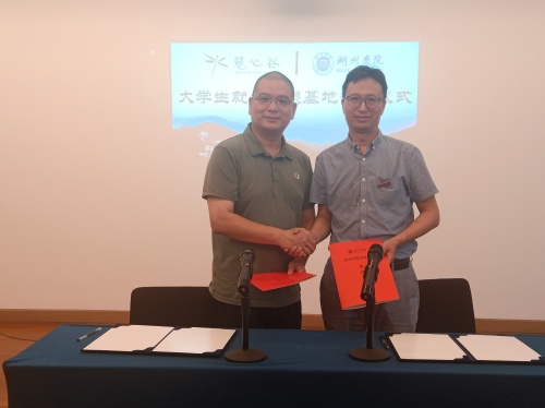 当前,我校“白鹭齐飞 夏耕树人”——产教城融合育才实践活动正如火如荼开展。为了进一步加强校企合作,为培养高素质应用型人才凝心聚力,2022年7月12日下午,我院分别前往湖州慧心谷酒店管理有限公司(下称“慧心谷酒店”)、湖州长颈鹿庄园有限公司(下称“长颈鹿庄园”),在两家单位分别举行“大学生实践基地”签约暨授牌仪式。beat365平台副院长,湖州慧心谷酒店管理有限公司运营总经理薛晨刚、行政副总经理周旻,湖州长颈鹿庄园有限公司综合办公室主任施卫时出席签约仪式,beat365平台专任教师史长宽、杨欢欢,我校“白鹭齐飞、夏耕树人”吴兴区实践团带队老师赵文超、葛玮参加签约仪式。