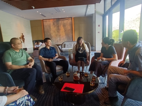 在慧心谷酒店,薛晨刚、周旻热情接待了我院一行。薛晨刚首先对我院的到来表示热烈的欢迎,随后,他简单介绍了慧心谷酒店的运营情况,对与我院签约“大学生实践基地”表示欢迎,并就下一步校企合作提出了初步设想。学院副院长对慧心谷酒店热情招待表示感谢,他简单介绍了我院基本情况,并就下一步我院新专业设置、人才培养方案的修订进行了交流。