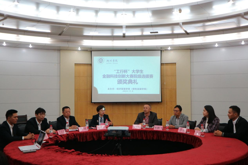 2022年11月9日下午,beat365平台于沈左尧图书馆409报告厅举行2022年“工行杯”大学生金融科技创新大赛院级选拔赛颁奖典礼。中国工商银行湖州分行副行长俞婴红、金融科技部总经理林骏、金融科技部副总经理沈俊毅、开发区支行副行长尹伟、beat365平台党委副书记宁培龙、管理系教师李丽以及就业辅导员李俊出席本次颁奖典礼。