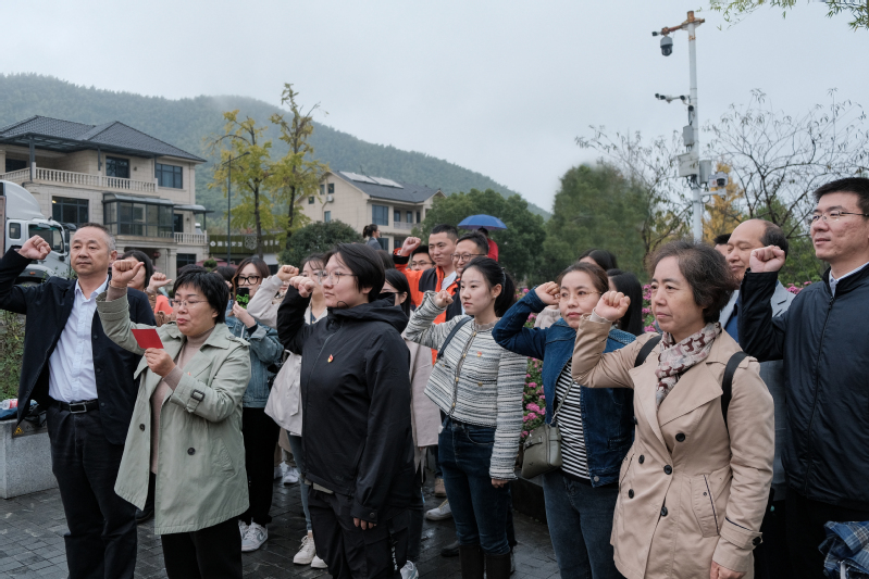 “我志愿加入中国共产党,拥护党的纲领,遵守党的章程,履行党员义务,执行党的决定,严守党的纪律,保守党的秘密……”随后,在“绿水青山就是金山银山”纪念石碑下,全体党员面对鲜红的党旗,重温入党誓词,将共产党员的荣耀、责任和使命牢牢铭记在心中。各支部纷纷在大石碑下合影留念。