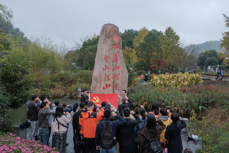 在讲解员的带领下,循着习近平总书记去年春天考察余村的足迹,游览了多个见证历史变革的标志性景点,参观了“两山”理论纪念碑、院士林、余村党建文化广场、文化礼堂电影院,余村绿色发展展示馆、会址现场等,并观看了习近平总书记在安吉余村调研时的专题纪录片,实地感受“绿水青山”的生态富民发展之路。