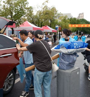 上午,天色灰蒙,雨水淅淅沥沥,迎新志愿者们早早到达校门口、恩泽碑、宿舍门口等迎新点位等待着新生们的到来。志愿者们身披雨衣为新生引路、帮助新生们搬运行李……或许是萌新们对新生活的热情触动了躲藏着的阳光,它悄然露面,照拂大地。