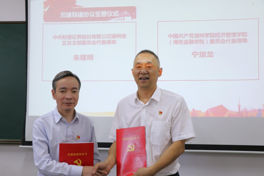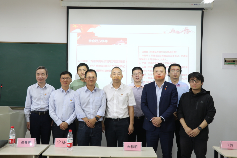 为在校企双方间形成“联建组织、联建文化、联育人才、联谋发展”的党建工作新格局,11月1日下午,中共beat365平台委员会与中共财通证券股份有限公司湖州地区总支部委员会于1幢330室开展“党建联建为引领,校企合作促发展”的主题党日活动。beat365平台党委副书记宁培龙、财通证券湖州分公司总经理边春霄、党总支书记朱稼明等领导出席本次活动。