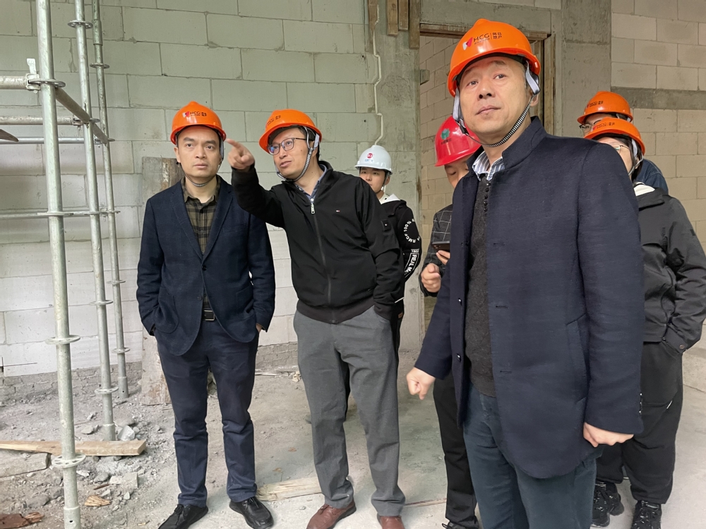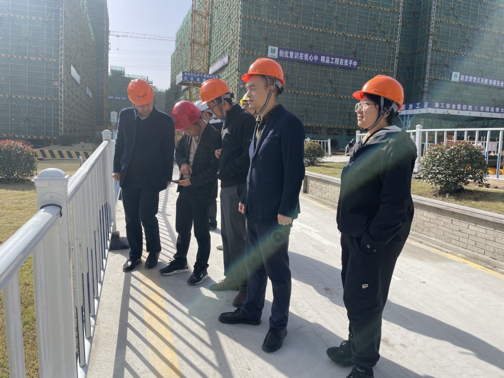 在校园建设处工作人员的带领下,姚金海一行进入在建的学院楼内部,对建筑物内部结构和施工进度进行了详细了解。