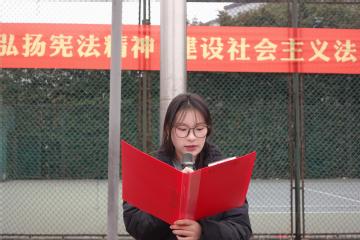 升旗仪式后,经管学院宣讲团代表郭浩婷、丁盼盼朗读朗读宪法第一章内容,带领大家回顾宪法的历史和意义,并号召全体师生用自己的行动践行宪法精神。