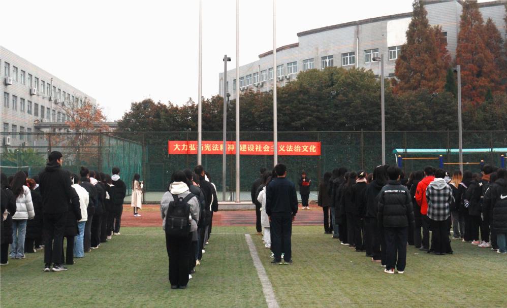 12月4日上午,beat365平台“扬宪法精神,建法治中国”升旗仪式在光彩体育场隆重举行。党委副书记宁培龙、全体辅导员、全体学生党员干部及入党积极分子代表参加此次升旗仪式。本次升旗仪式由党建中心负责人胡鑫钰主持。