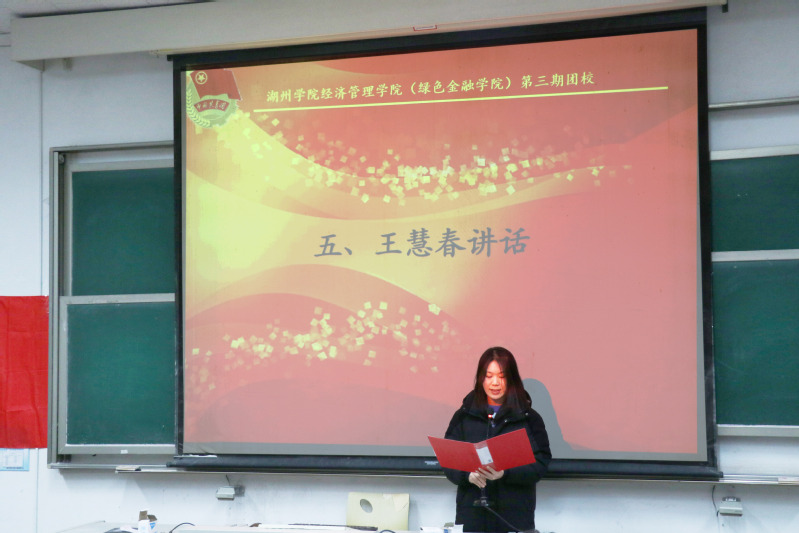 最后,王慧春上台作讲话,首先,她对团校圆满成功表示热烈祝贺。她指出当代大学生要坚定理想信念,筑牢理想之基。凝聚青春力量,勇于超越自我“‘人生万事须自为,跬步江山即寥廓’,追求进步,满怀热血和勇气,都是青年最宝贵的特质,也是党和人民最殷切的期望。”