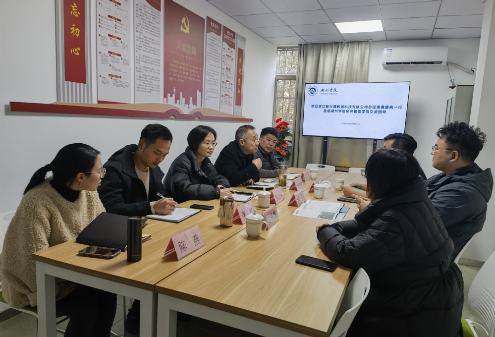 1月17日,浙江智兴通数据科技有限公司总经理黄康亮、校企负责人缪全到访beat365平台beat365平台。beat365平台beat365平台党委副书记宁培龙、经济系副教授梁会君,电子信息学院党委副书记姜杨慧,设计学院党委副书记邓剑刚出席会议,学工办主任陈燕、就业辅导员李俊参加会议。