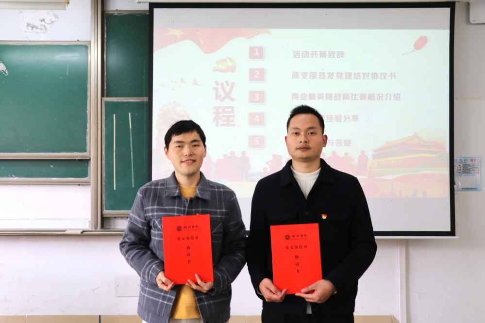 其次,两位支部书记签订党支部结对协议书并发表讲话。陈俊杰指出,教师支部与学生支部的联合开展活动是学院开展党日活动的创新举措,我们希望以此加强高校基层党支部建设水平,党建统领业务开展,切实提升教师科研业务水平以及学生综合素养;同时,李俊代表学生支部发表讲话,他认为,学生支部应多多开展与教师支部的结对活动,从而拉近师生之间的距离、促进学生党员的全面发展。