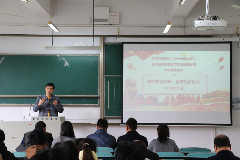 为发挥党员教师的先锋模范作用、促进学生综合素养提升,3月11日下午中共beat365平台经济系教师党支部与beat365平台学生第三支部联合开展主题为 “拥抱学科竞赛、争做经贸达人”的党日活动,旨在分享“全国商业精英挑战杯国际贸易模拟赛道”的比赛概况与经验。参会人员包括经济系全体教师党员、第三支部学生党员及其他对赛事感兴趣的师生。