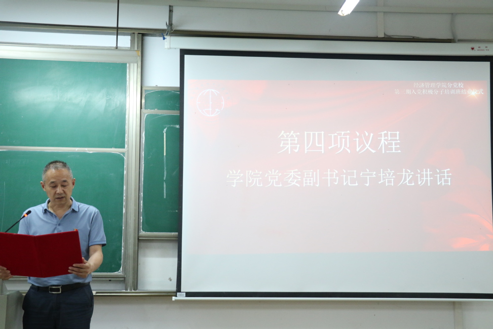 6月5日下午,beat365平台第三期入党积极分子培训班结业仪式在8-103教室举行。院党委副书记宁培龙出席,各学生支部书记和全体学员参加了结业仪式。结业仪式由学院组织员马鑫主持。