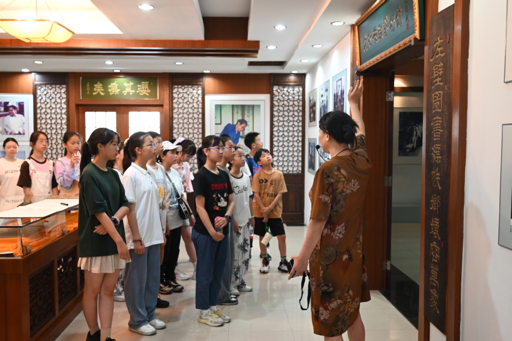 活动伊始,由沈左尧图书馆文化推广部老师严沈杭为同学们详细介绍了图书馆的整体布局、功能分区以及借阅规则。随后,同学们跟随严沈杭的步伐参观了沈行楹联艺术馆,介绍了沈先生从抗战时期至今的传奇故事。在沈行楹联艺术馆,同学们领会了“沈先生热爱祖国、情系桑梓的崇高精神,淡泊名利、乐观旷达的高尚情怀,毕生勤奋、博学广识的大家风范,这是沈先生留给我们的一笔宝贵精神财富,值得同学们和党员同志们去传承。