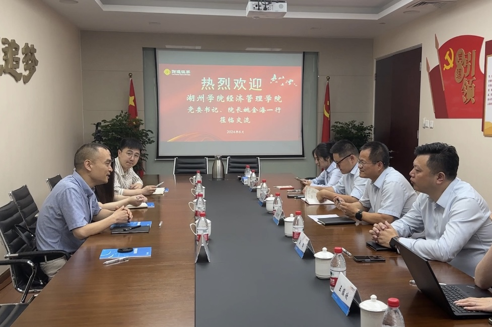 姚金海则在优质生源输送、绿色金融科研、党建联建等方面发表了自己的看法。他提出,经管学院有责任为湖州当地金融企业输送优质人才,建议以“微专业”的形式进行储备金融人才的联合培养;在科研方面,双方可以进行绿色金融等体现湖州地方特色的项目进行合作,数据共享。姚金海重点强调了“党建引领业务发展”的理念,希望以党建联建为支点,定期举办校企活动,进一步加深双方合作进程。