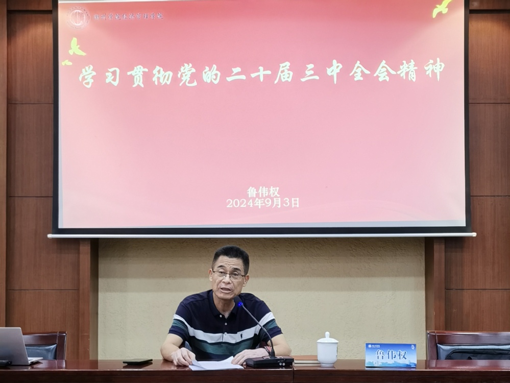 9月3日下午,校党委副书记鲁伟权到我院宣讲党的二十届三中全会精神。学院党委书记、院长姚金海主持会议,学院领导班子、各党支部书记、内设中层干部参加。