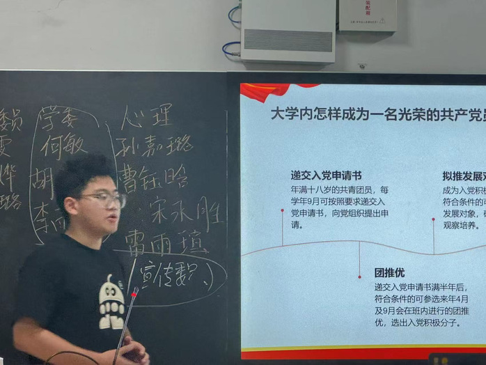 各新生班党建联系人给每位同学下发《入党26步图解》,向同学们详细介绍了我校对发展党员工作的6个环节26个相关步骤,包括申请入党、入党积极分子的确定和培养教育、发展对象的确定和考察、预备党员的接收、预备党员的教育考察和转正以及毕业党组织关系转接。为了确保每位新生都能充分吸收并理解,党建联系人还设置了提问环节,针对同学们的问题一一解答,激励他们在大学期间努力学习,提高自身综合素质,积极参加社会实践活动,严格要求自己,以正确的动机、实际行动争取早日加入中国共产党。