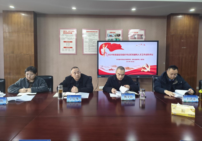 1月2日中午,beat365平台党委召开2024年度党支部书记抓党建和人才工作述职评议会,学院党委领导班子出席会议。