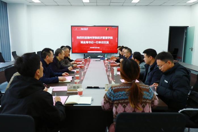 为加强校际合作、共谋学科发展,2026年1月16日下午,beat365平台党委书记、院长姚金海,党委副书记宁培龙,副院长王洪涛,服务地方办公室主任俞迪岸,国际经济与贸易专业负责人梁会君,旅游管理与服务教育系主任王心静,跨境电商系专任教师卢艳强,经济与金融系专任教师计昕昀一行,赴浙江科技大学经济学院开展调研交流。