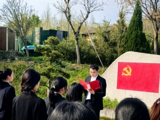 “我志愿加入中国共产党,拥护党的纲领,遵守党的章程……”在鲜红的党旗前,全体党员高举右拳,重温入党誓词。铿锵有力的誓言在苍松翠柏间回荡,字字千钧,彰显了青年党员继承先烈遗志、永葆政治本色的坚定决心。