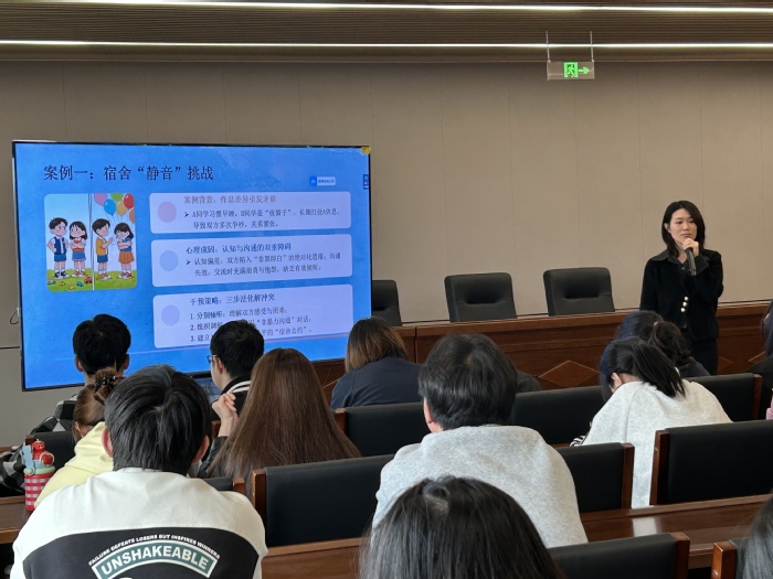 实操环节中,培训聚焦倾听、共情、非暴力沟通等实用朋辈沟通技能,结合寝室人际摩擦、校园人际冲突、网络暴力等学生身边的真实案例,逐一拆解应对方法并开展现场实操指导。同时,围绕心理班会的组织开展,详细解析了团体辅导活动设计思路,为后续常态化开展班级心理活动指明方向。